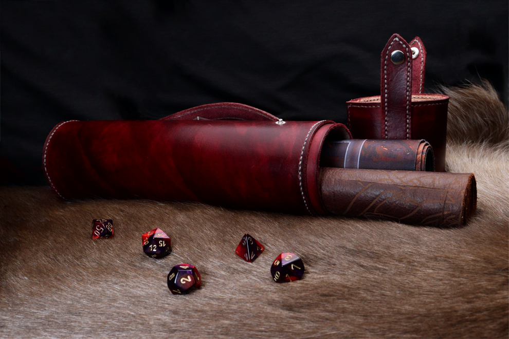 Meet your playmats' new best friend! This Large Playmat Case is lovingly handcrafted from veg tan leather that gets more gorgeous with every adventure. Roomy enough to snugly hug two playmats, it keeps them wrinkle-free and ready for action! Each stitch is placed with care by actual human hands (not robots!), making every tube as unique as your gaming style. Level up your carrying game with this leather beauty that's built for fun and made to last!